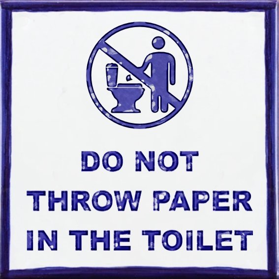 Πινακίδα Μην Πετάτε Χαρτιά στη Λεκάνη – Εκτυπωμένο Πλακάκι (15×15εκ.)