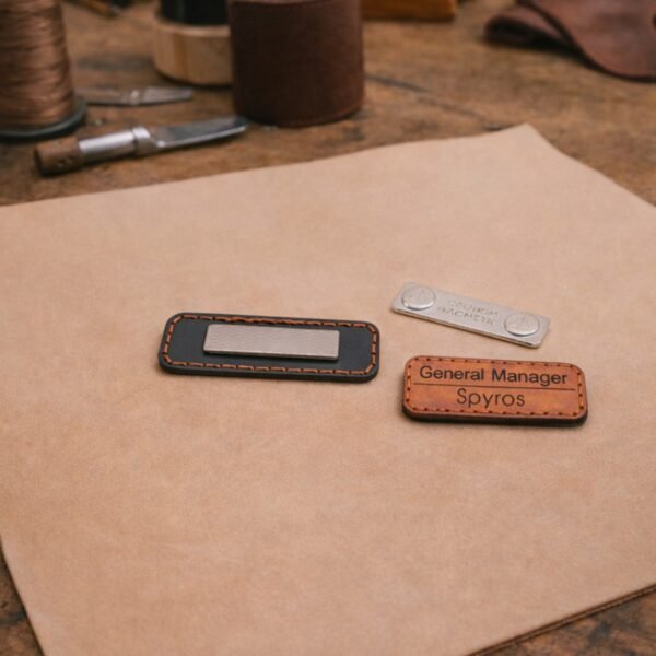 Αν θέλετε η πρώτη εικόνα που σχηματίζει ο επισκέπτης για την επιχείρησή σας να αποπνέει ζεστασιά και πολυτέλεια, αυτό το καρτελάκι είναι η λεπτομέρεια που κάνει τη διαφορά. Συνδυάζουμε το φυσικό δέρμα με μια εσωτερική ακρυλική πλάτη για απόλυτη σταθερότητα, δημιουργώντας ένα αξεσουάρ που ξεφεύγει από τα συνηθισμένα πλαστικά πρότυπα.